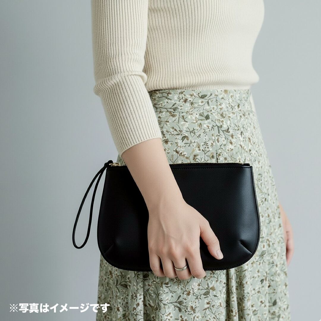 ・サイズ:ポーチの横約25.5㎝、縦約15cm、ストラップの長さ約40㎝、ファスナー約20㎝