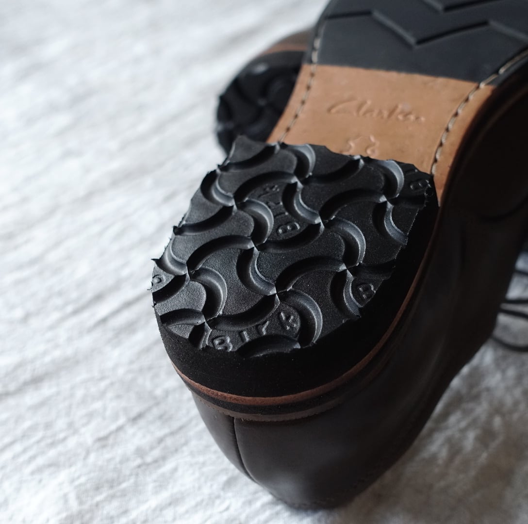 靴底の踵部分が削れて減っていたので修理しています。ビルケンシュトックのソールを合わせています。
