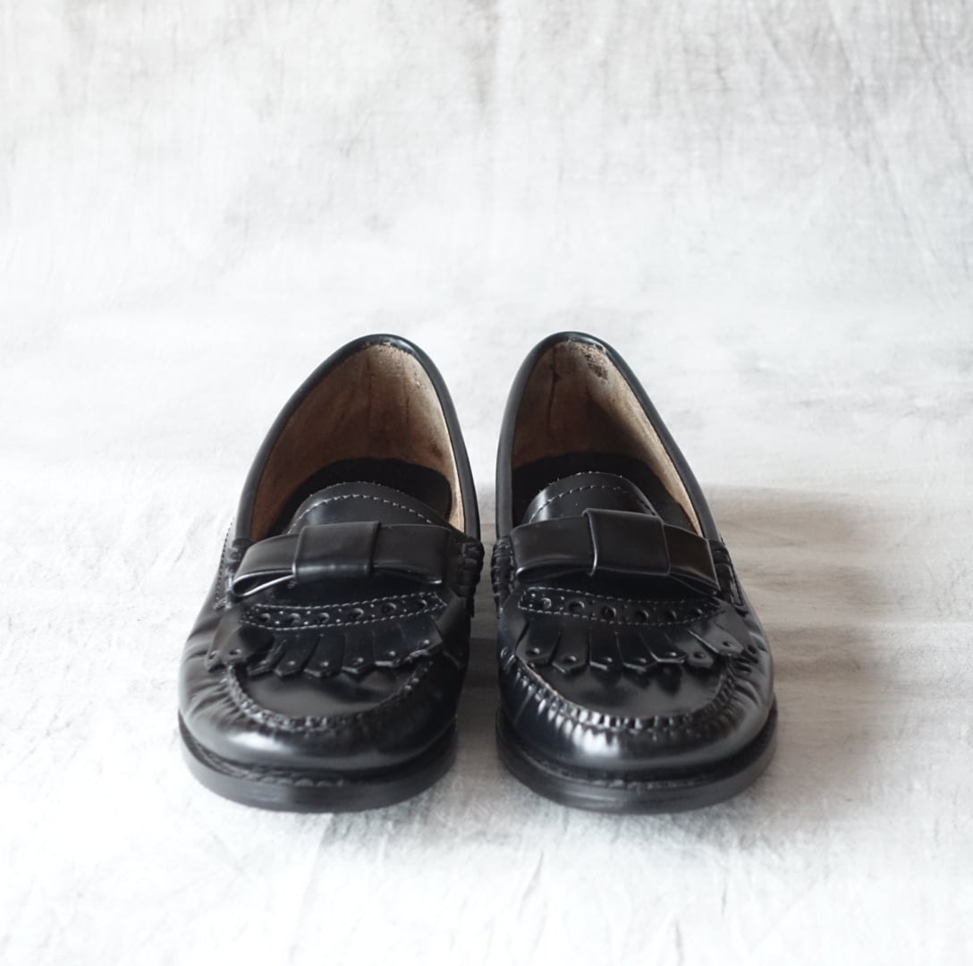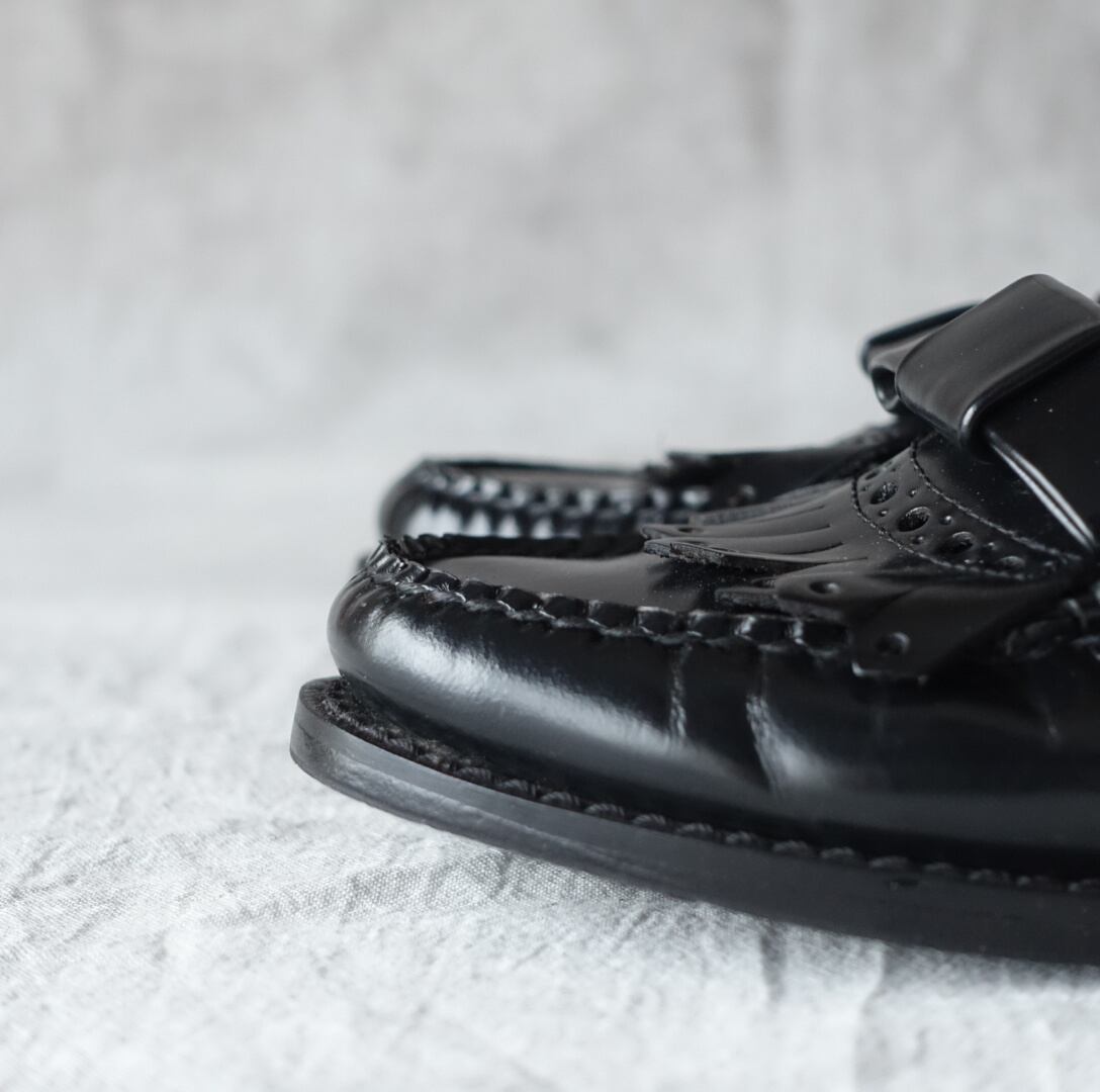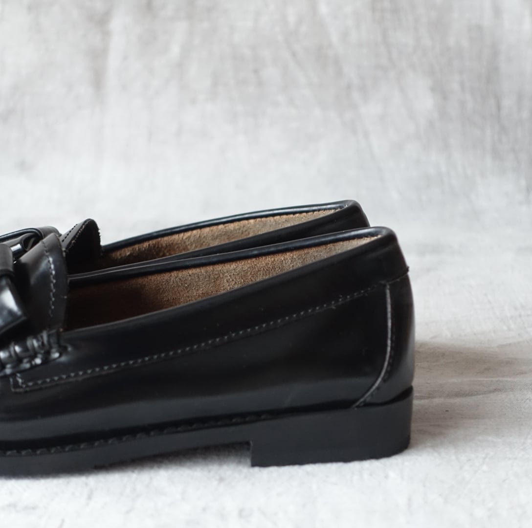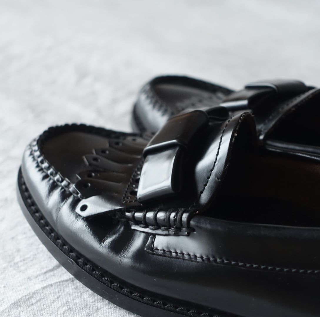オペラパンプスのリボンとタッセルシューズのキルトタッセルが1足の靴に合体したようなタッセルローファーです。
