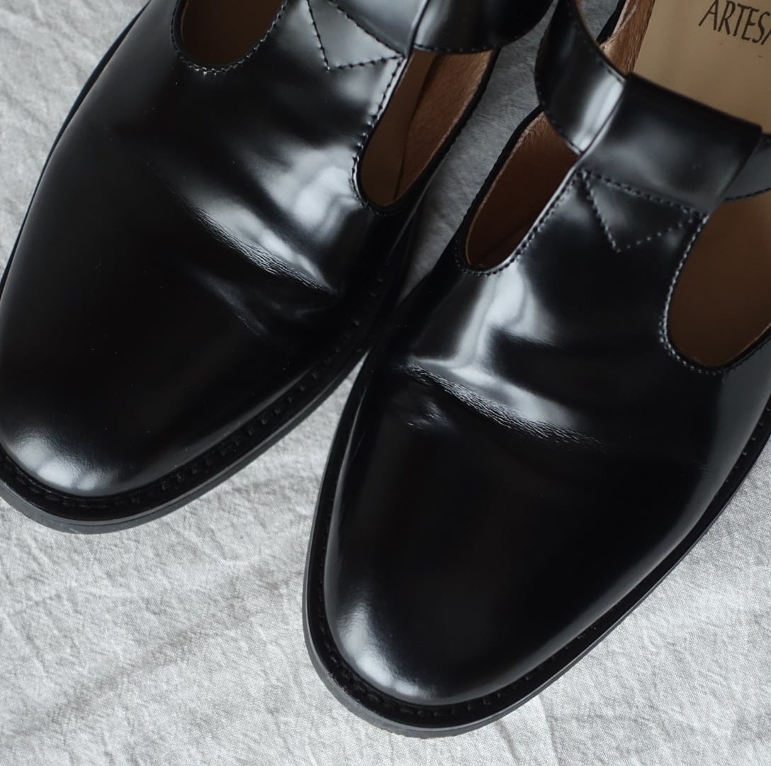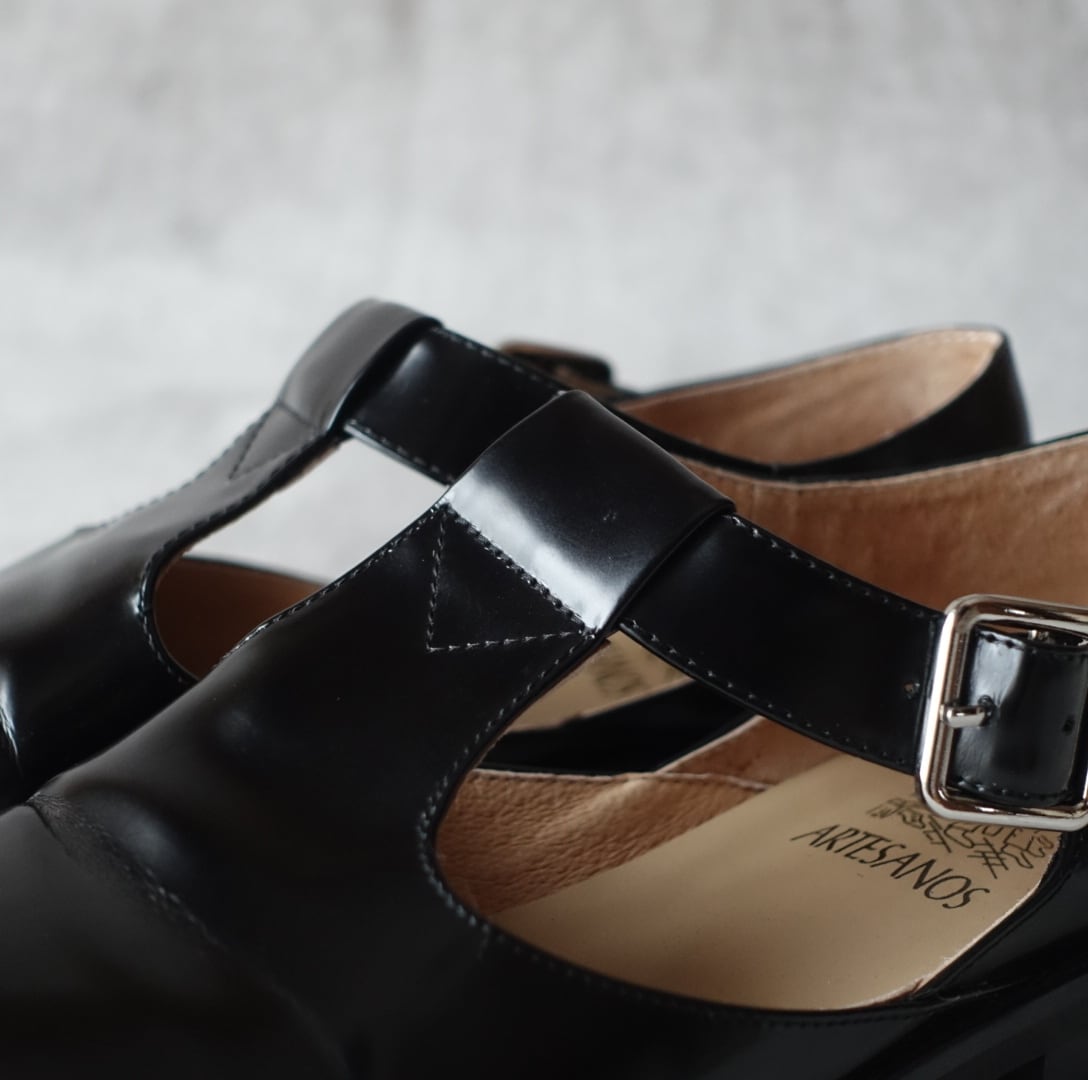 スペイン発のファクトリーブランド、ARTESANOSのTストラップシューズです。